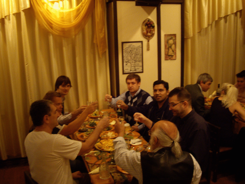 Martyn and I just returned from an absolutely wild dinner with a bunch of LEDAS folks at an absolutely amazing Armenian restaurant. The food was absolutely out of this world. We lost count of how many Armenian vodkas we downed. We had them in increasing levels of concentrations: 40%, 46%, 51% and finally 57%.