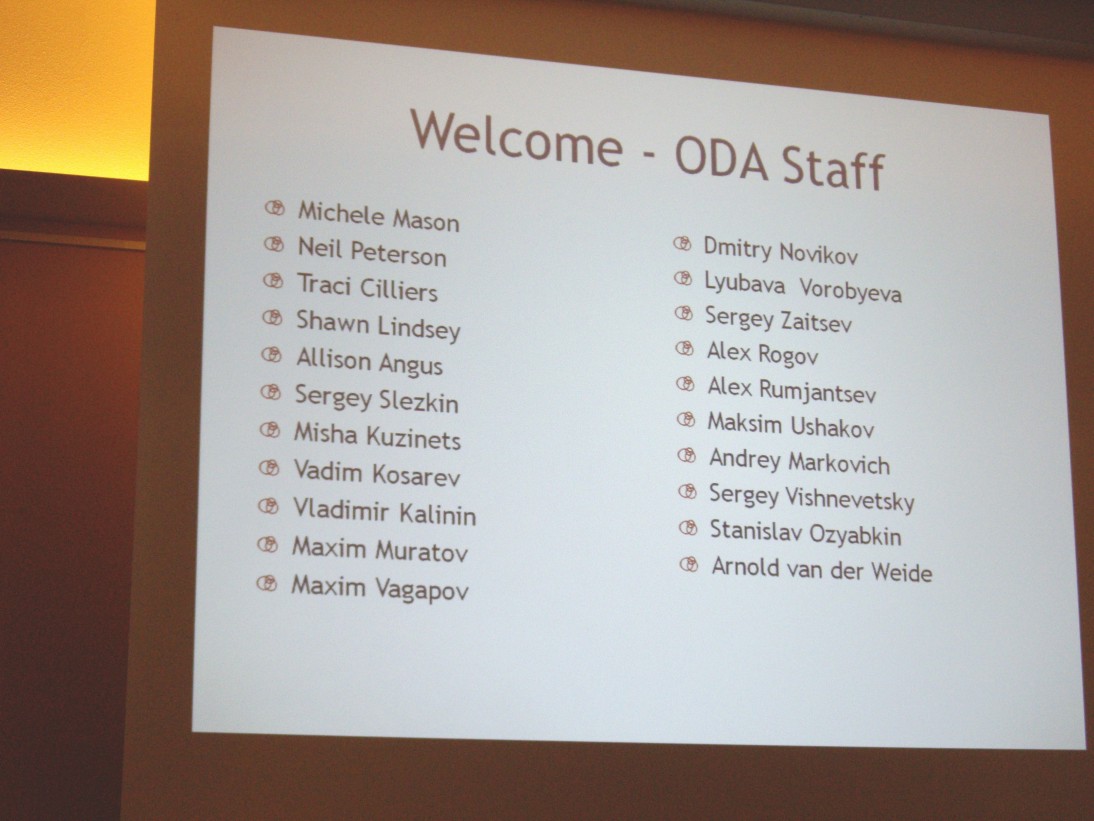 He started by calling the members of the ODA staff, all 25 of them, and introduced them one by one. I finally got to put a face to the names of the programmers that I have been corresponding for all these years.