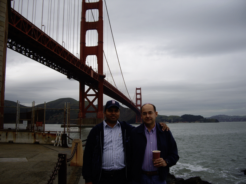 My wonderful host, Jim Quanci, has been driving me around San Francisco and showing me some interesting stuff. A couple of days ago we drove to the Golden Gate bridge, an engineering marvel. Here are a couple of pictures. Click the images for larger views.
